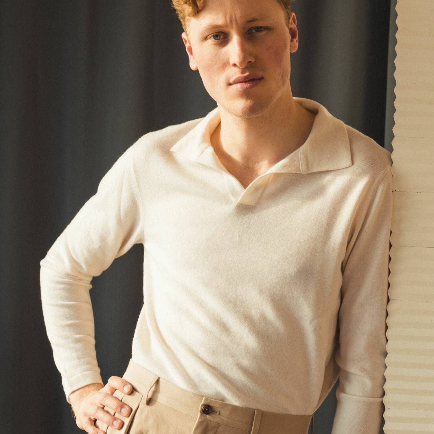 The finished product is carefully washed in the spinners in Italy, giving the garment its renowned soft handle.
