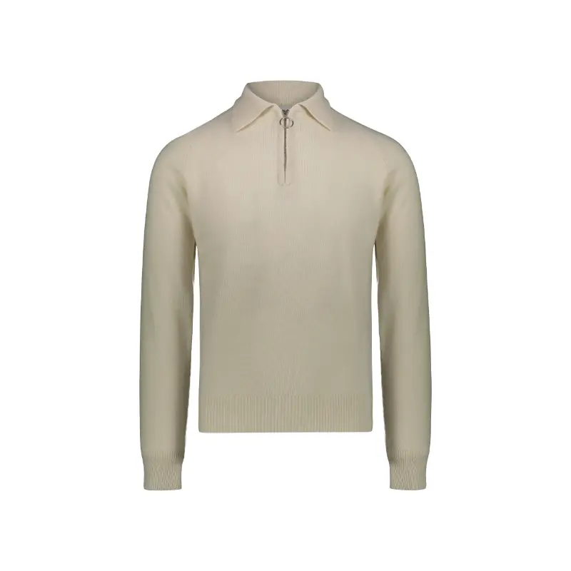 A refined collar and metal zipper add versatility, making it suitable under jackets or as a lightweight outer layer.