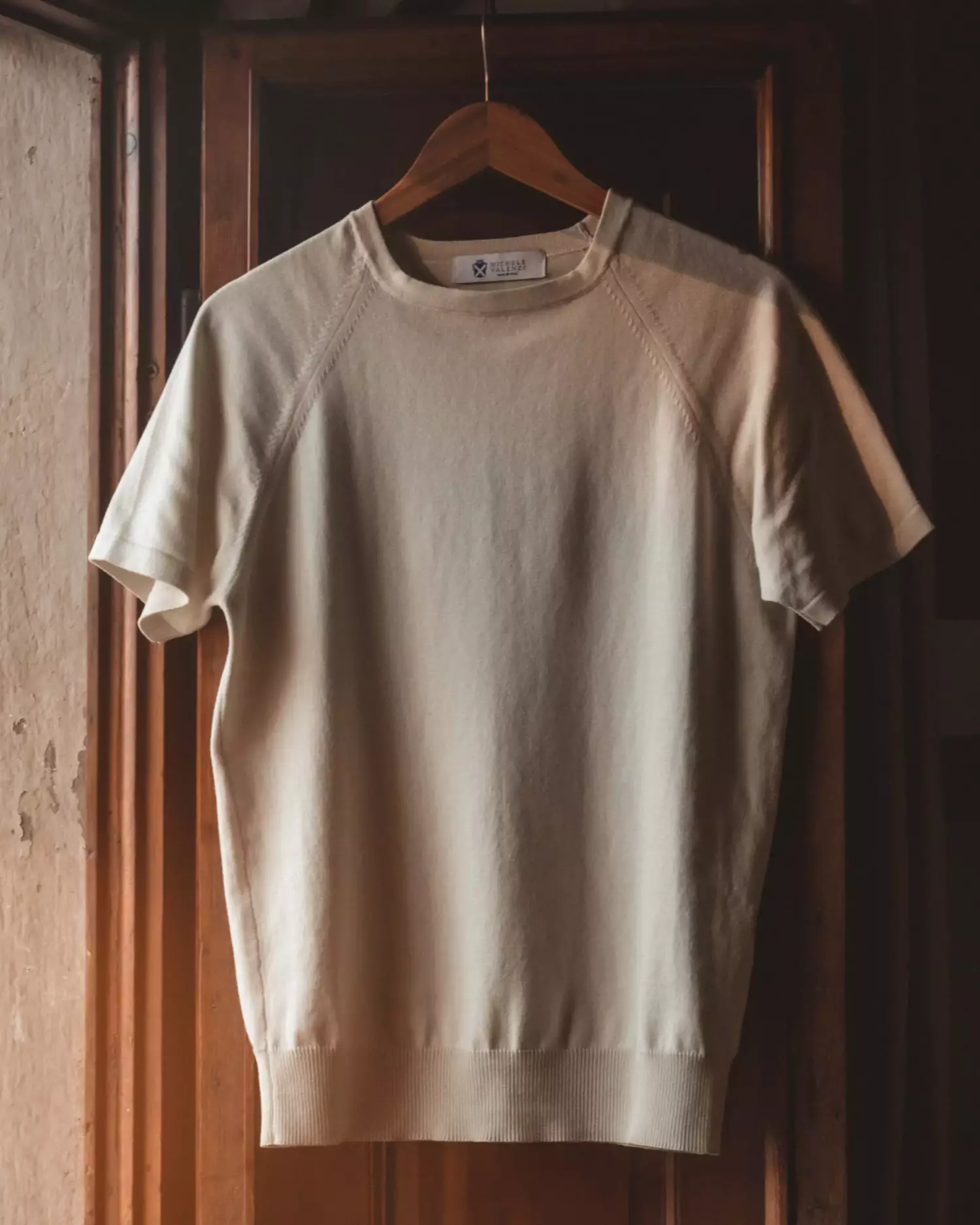 Knitted from an exquisite cotton-silk blend, this piece captures that same sense of connection and balance: light yet rich, simple yet distinguished.