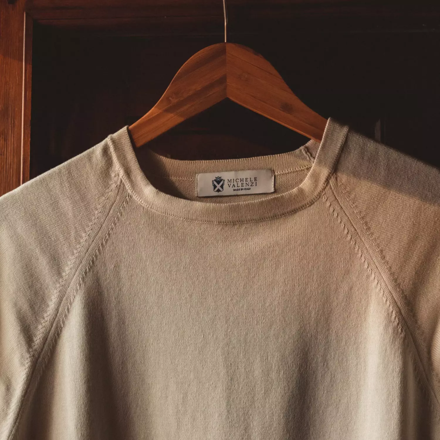 The finished product is carefully washed in the spinners in Italy, giving the garment its renowned soft handle.
