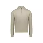 Half-zip design with a flat knit collar that can be worn over jacket or coat lapels. Longer ribs at cuffs and hem keep the garment comfortably fitted.