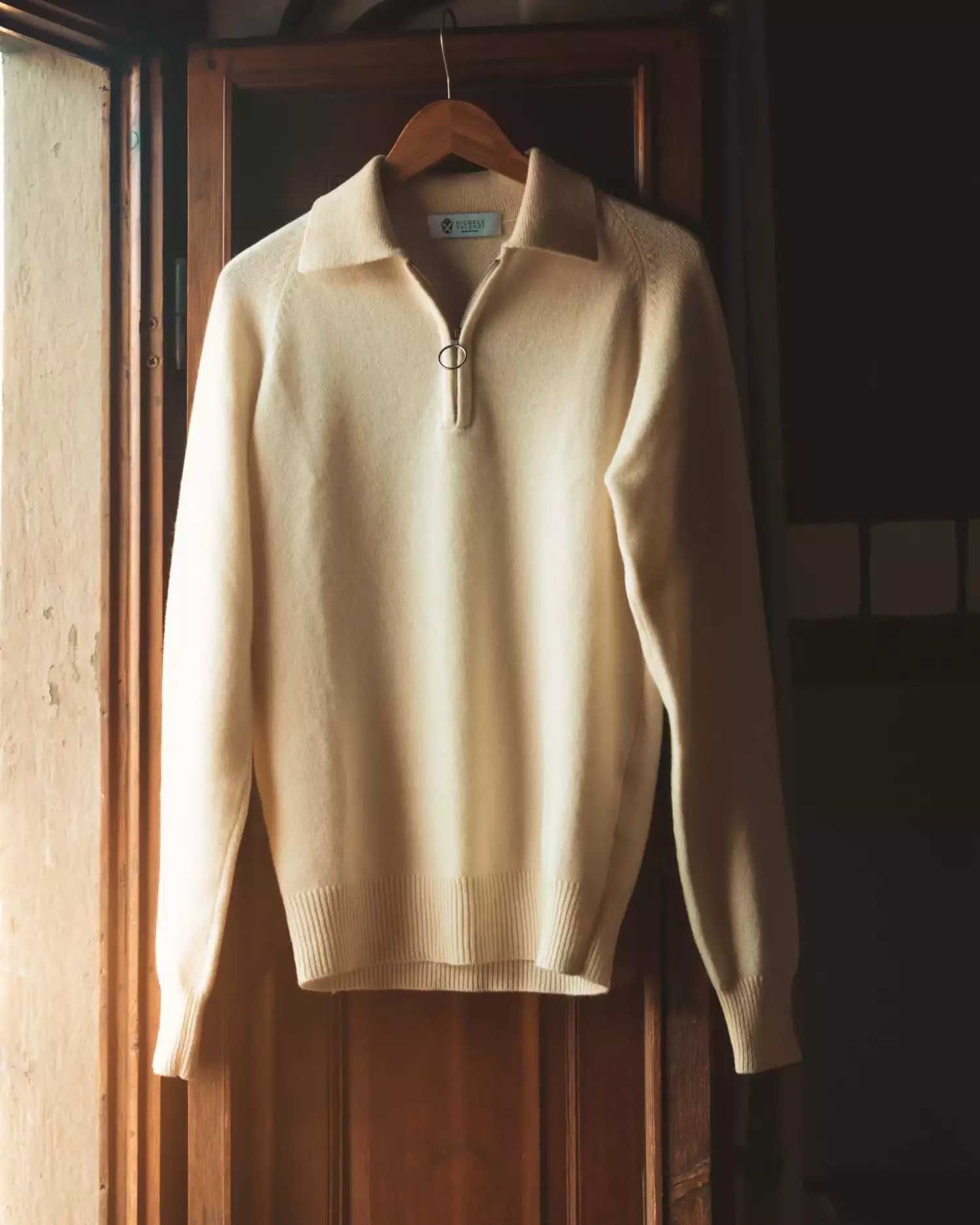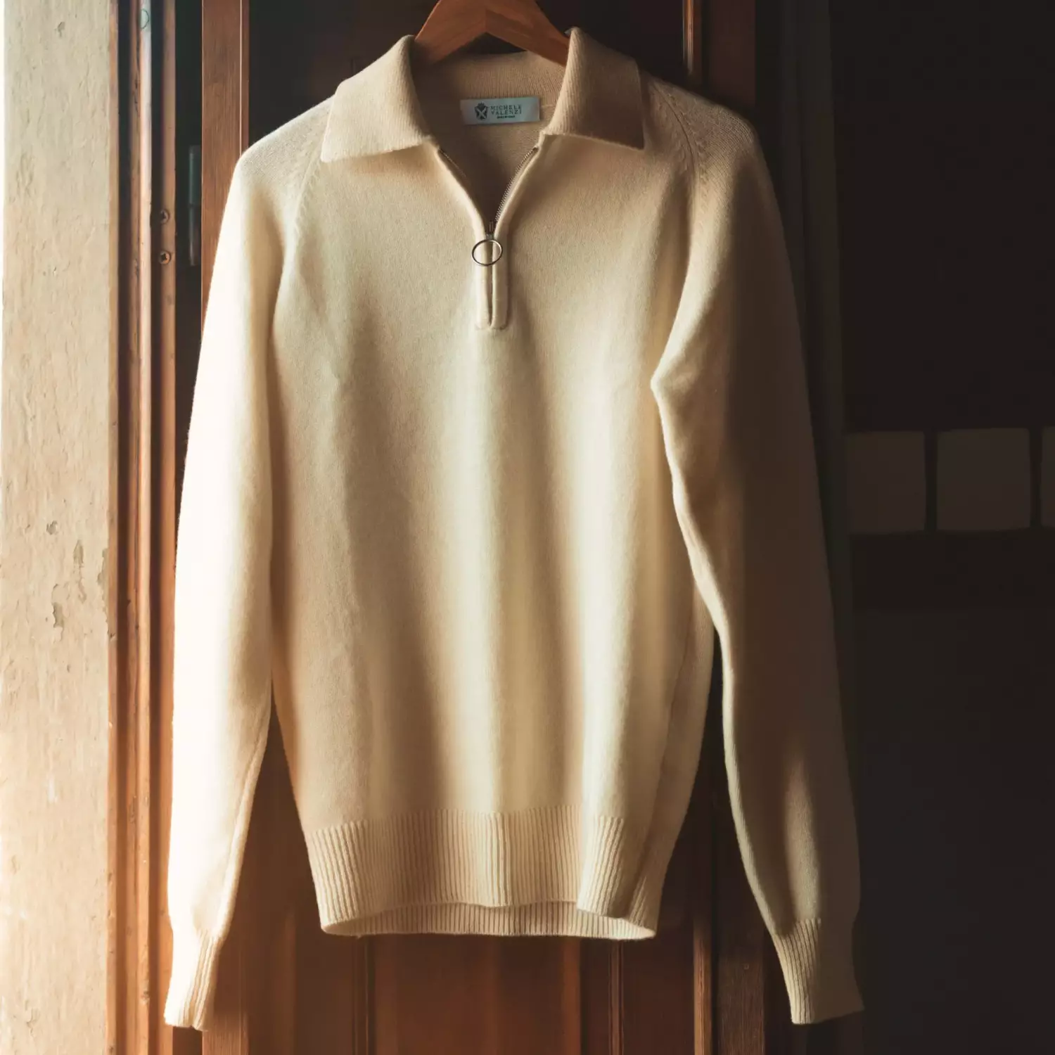 The finished product is carefully washed in the spinners in Italy, giving the garment its renowned soft handle.